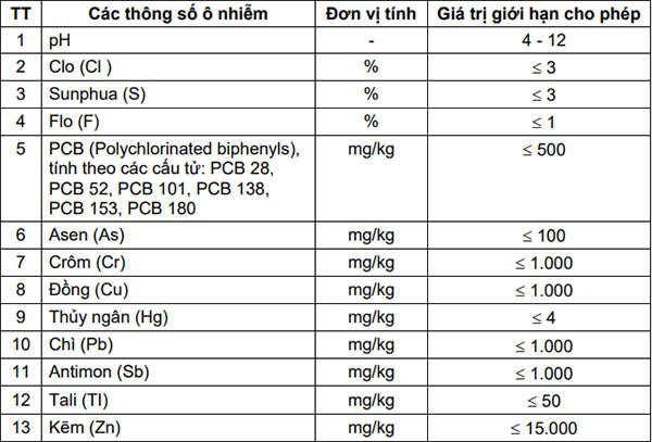 Lò nung cũng phải trang bị hệ thống xử lý khí thải với công đoạn xử lý các chất ô nhiễm độc hại. Đồng thời, khu vực lưu giữ, tiền xử lý và nạp chất thải phải có thiết bị thu gom, xử lý và ngăn ngừa phát tán mùi. Lò nung xi măng không được đồng xử lý các loại chất thải gây nguy hiểm như chất thải phóng xạ, chất thải dễ nổ, chất thải chứa thủy ngân vượt quy chuẩn cho phép. Ngoài ra, chất thải chứa amiăng, chất thải y tế lây nhiễm và thiết bị điện tử thải cũng bị cấm xử lý.