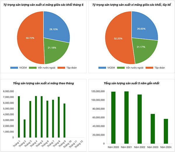 Cùng với các bảng biểu và danh mục dữ liệu chi tiết, là các đánh giá phân tích so sánh thông qua các biểu đồ, đồ thị minh họa trực quan, phản ánh đầy đủ thực tế hoạt động và quá trình phát triển của ngành Xi măng Việt Nam trong 20 năm qua.