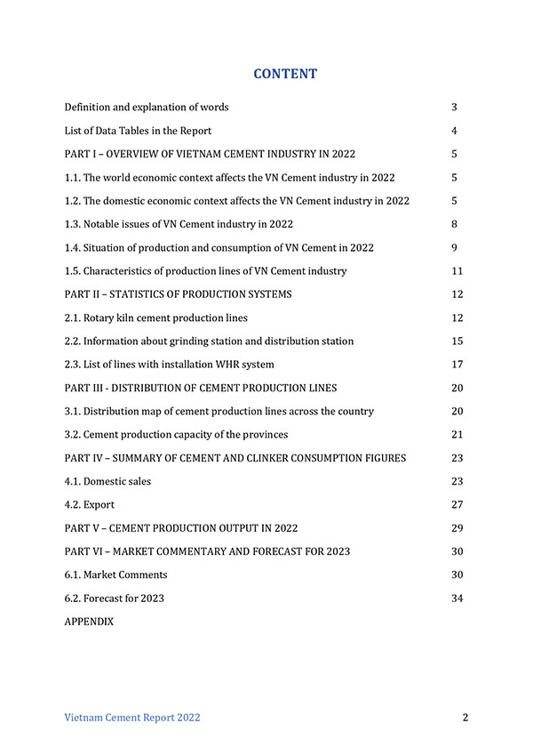 Định kỳ quý I hàng năm, Ban Biên soạn ximang.vn (Trung tâm Thông tin và CSDL chuyên ngành Xi măng Việt Nam)sẽ xuất bản Báo cáo ngành Xi măng Việt Nam (Vietnam Cement Report - VNCR) năm 2022, dự báo cho năm 2023, với những điểm nổi bật đáng chú ý sau đây: